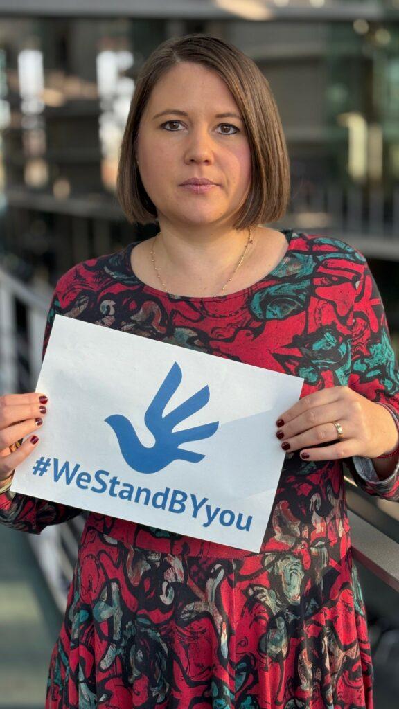 Carolin Wagner ist Mitglied des deutschen Bundestages für die Partei SPD. So unterstützt sie auch die Arbeit der Arbeitsgemeinschaft sozialdemokratischer Frauen. Sie erklärt: „Verhaftungen, Unterdrückung und Folter. Nahezu keine freie Berichterstattung, kaum Nachrichten, die von den Gefangenen an ihre Familien durchsickern. Belarus, das Land, das vor fünf Jahren noch von Freiheit geträumt hatte, ist heute von Angst und Depression geprägt. Doch Belarus ist auch das Land mutiger Bürger*innen, die trotz großer Gefahren für Menschenrechte, Freiheit und Demokratie aufstehen. Menschen wie Hanna Papai: eine junge, mutige Frau, die vor ihrer willkürlichen Festnahme am 9. November 2024 als Bankkauffrau arbeitete – und wie ich zwei Kinder hat. Sie setzte sich mit Spenden und Kommentaren im Netz für ihre Grundrechte ein. Ihre rechtswidrige Festnahme, eine drakonische Strafe von 2 Jahren und 6 Monaten und die politisch motivierte Einstufung als „Extremistin” sind klare Menschenrechtsverletzungen. Mit dieser Partnerschaft stelle ich mich solidarisch hinter Hanna Papai. Belarus muss die Freilassung dieser mutigen Frau und den vielen anderen zu Unrecht Inhaftierten garantieren! Meine Gedanken sind bei Hanna Papai, ihren Angehörigen und den vielen Weiteren, die unter der Unterdrückung des belarusischen Regimes leiden müssen.“