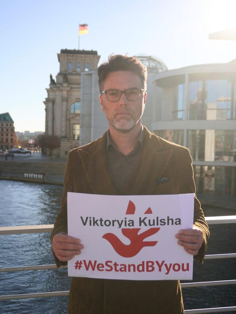 Robin Wagener, MdB für Bündnis 90/Die Grünen hat bereits mehrere Patenschaften übernommen – diesmal wird er der Pate von Viktoryia Kulsha. Er kritisiert die Menschenrechtslage in Belarus und bekräftigt Viktoryias Mut: “Ich fordere die sofortige Freilassung von Viktoryia Kulsha. Seit über fünf Jahren sitzt sie unschuldig in belarusischen Gefängnissen. Sie ist brutaler Folter ausgesetzt, ihre Haftstrafe wurde mehrfach willkürlich verlängert, zwischenzeitlich befand sie sich im Hungerstreik. Viktoryia hatte 2020 den Mut, Proteste gegen die gefälschten Präsidentschaftswahlen in Belarus zu organisieren. Sie hatte den Mut, sich für ein Ende der Lukaschenka-Diktatur einzusetzen. Meinungsfreiheit ist kein Verbrechen, sondern Menschenrecht. Das belarusische Regime hat ihr die Freiheit geraubt. Viktoryia gehört zu den über 1000 politischen Gefangenen in Belarus. Sie alle müssen sofort freigelassen werden.“