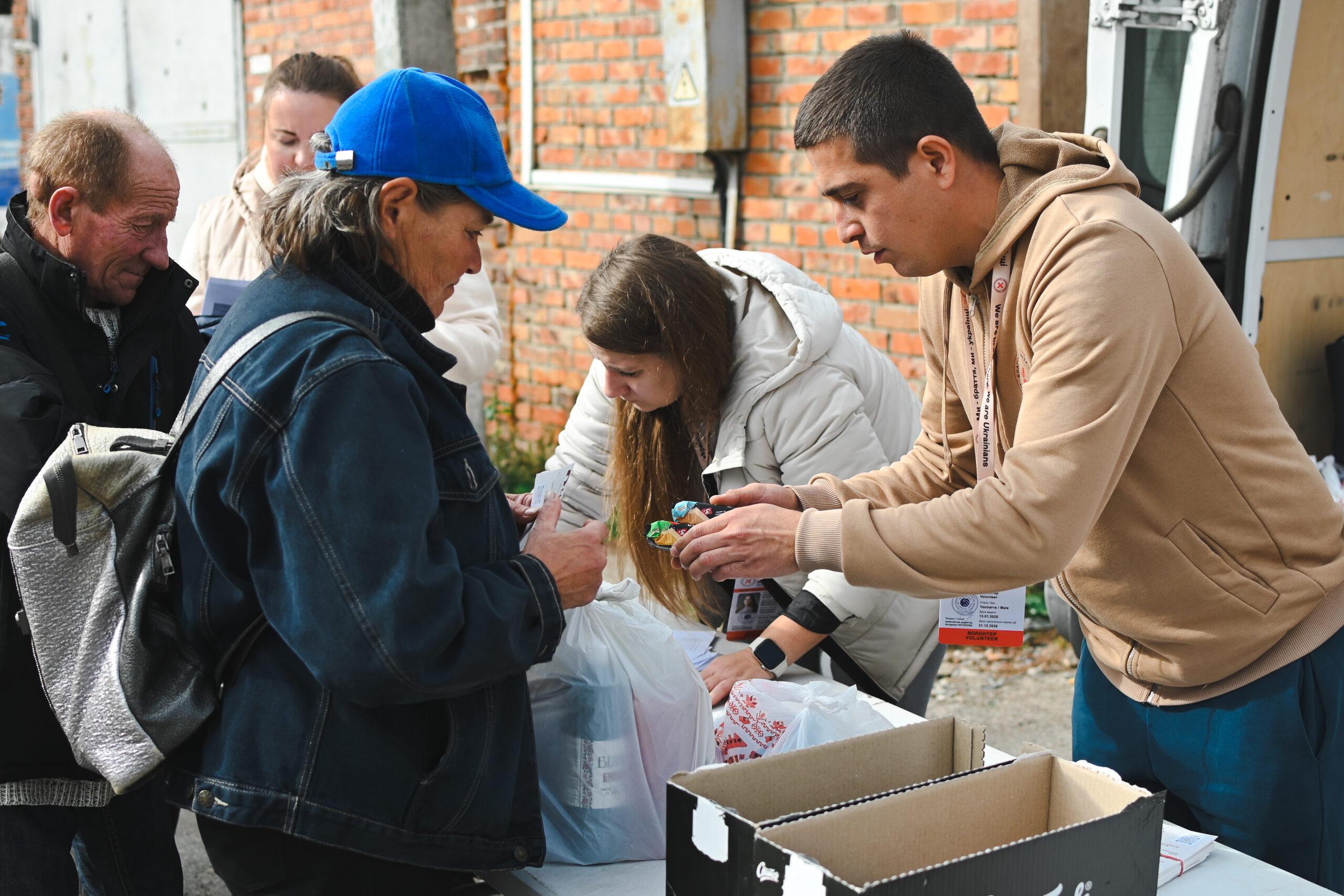 In der Region Charkiw versorgen wir besonders gefährdete Menschen mit Grundnahrungsmitteln und Hygieneprodukten, warmen Mahlzeiten und Soforthilfe nach dem Beschuss von Wohnhäusern.